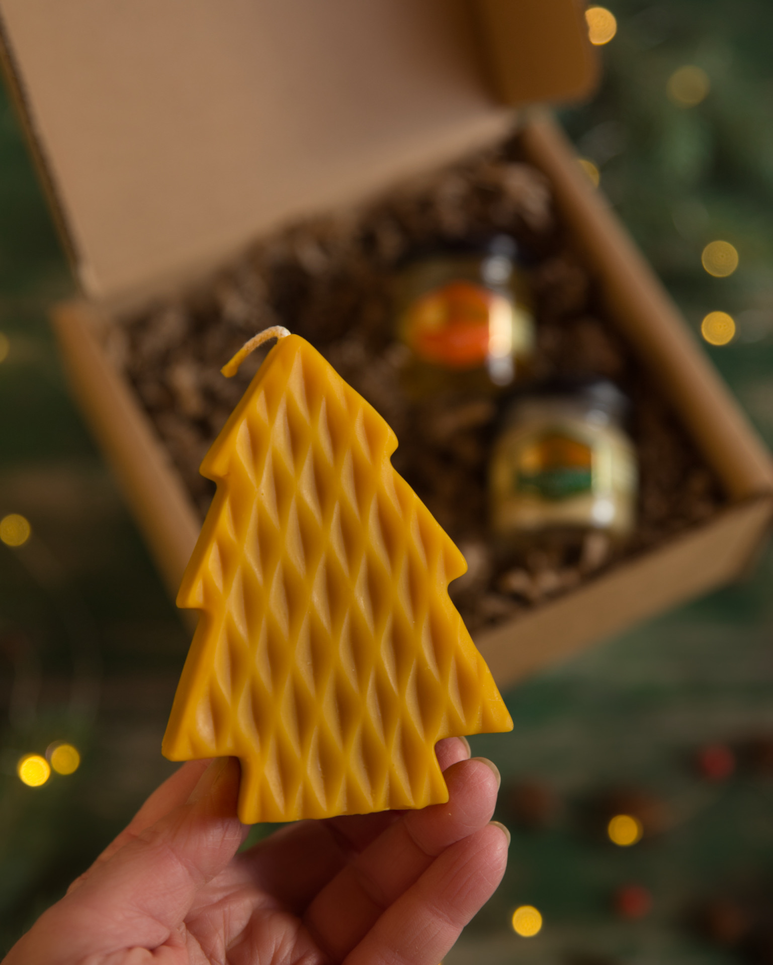 1x karácsonyfa kézműves méhviaszgyertya (MG-092)